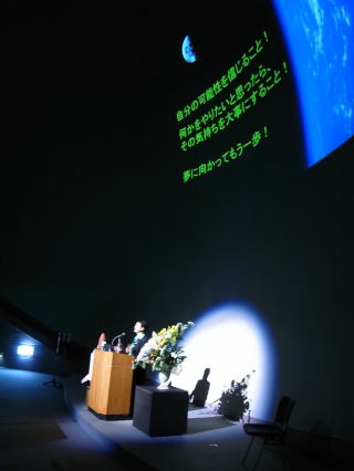 向井千秋宇宙飛行士ご自身の貴重な体験・活動と、市民の利用者など多くの方に支えられながらともにあったといえる科学館の20年の歩みと関連付けた講演を行いました。