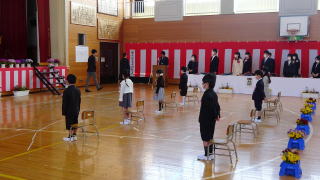 第四小学校に10名の新入生が入学しました。1年生も立派に式に参加することができました。