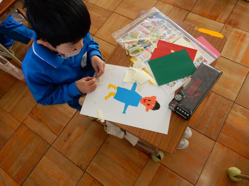 図工の学習ではカラータッグ版画づくりを行っています。今日は様々な色のシールを自分の顔や体の形に合わせ段ボール版にはり合わせました。細かいパーツも一つずつていねいに切り取り、組み合わせることができました。来週は、いよいよ刷る工程に入ります。作品の仕上がりが楽しみです。