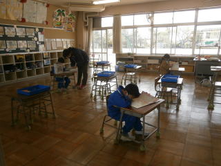 担任の指示により児童は退避