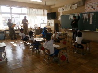 1年生は順調に学校に慣れてきました。英語授業では、体を動かしながら英単語を覚えました。また、生活科では学校探検で職員室や校長室、保健室などを訪れて、不思議だと思うことを質問しました。全員が毎日元気に活動をしています。
