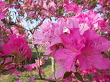 明るいショッキングピンクのはっきりとした印象のツツジ早咲きで園をいち早く彩る